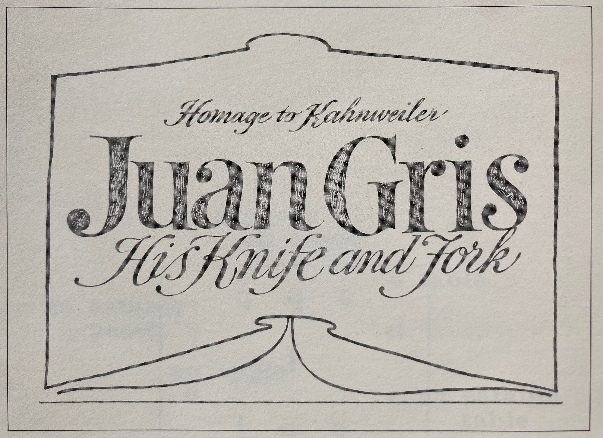 As regards “here”, and the present article (or its first installment), I’m writing it really to try out the platform, to find a home for a number of bits and pieces accumulated over a decade and more of research, which in the background is slowly becoming a book, on Finlay’s life and work. His “Knife and Fork”, as he riffed in a postcard of 1972, a homage to the Jewish-German collector, dealer and art historian Daniel-Henry Kahnweiler (1884-1979).